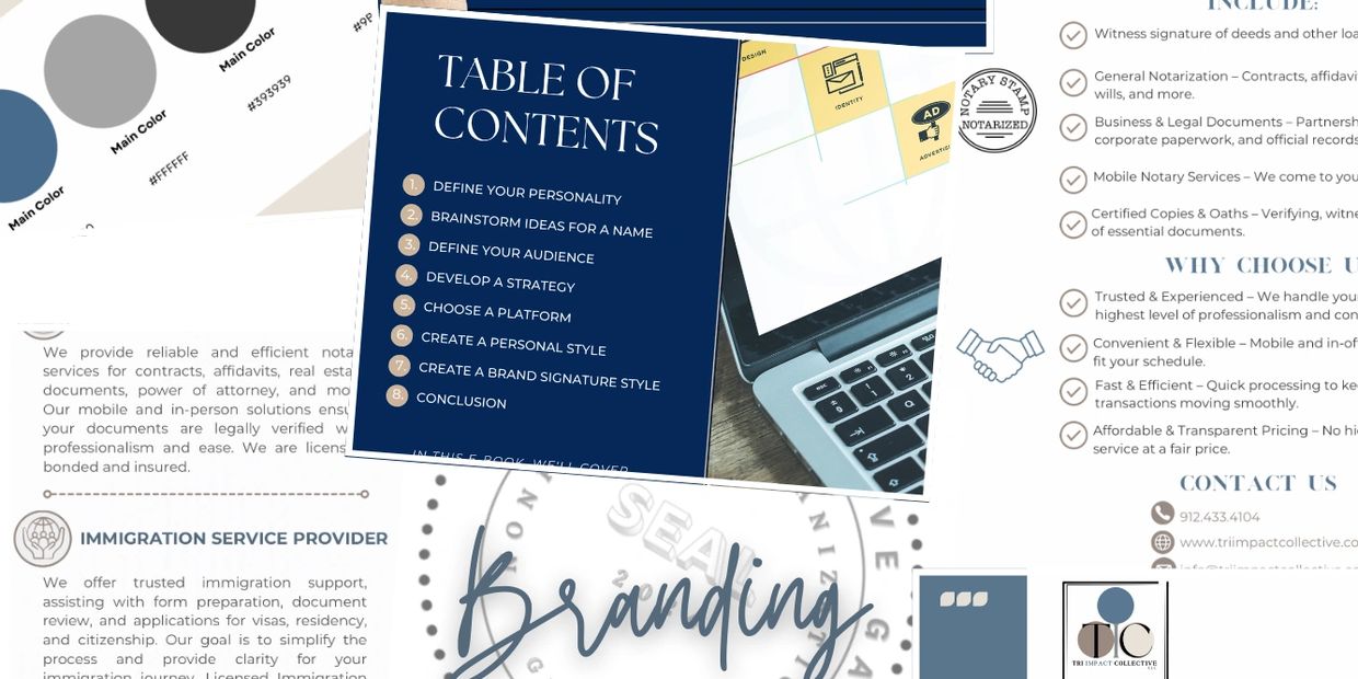 At Tri-Impact Collective LLC, we specialize in three key services designed to support individuals and businesses with professionalism and care: Brand Marketing, Notary Services and GA Licensed Immigration Assistance. We are bilingual offering services in English And Spanish. Hablamos español.